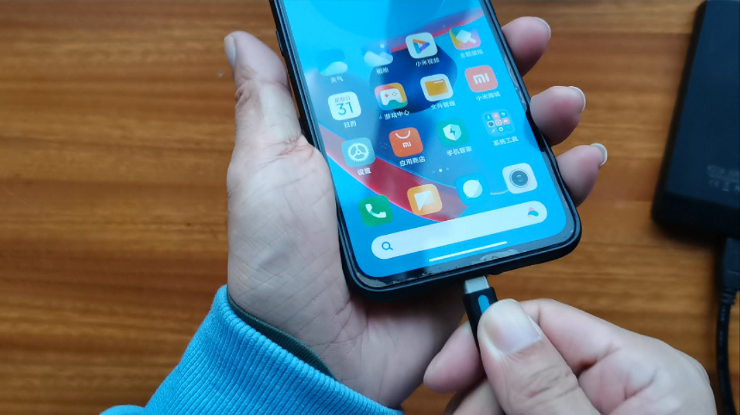 这里以小米手机为例,使用的时候,把U盘或移动硬盘插上OTG数据线的大头上,再把小头连接上手机。如果连接成功,手机通知栏里会有提示。