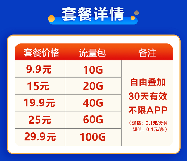 4.每月可以自由订购流量套餐,可以根据自己每月的花销,DIY定制出适合自己的流量卡套餐;